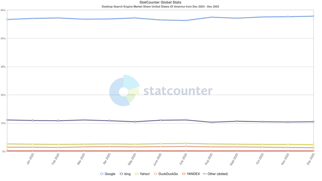 Bing’s share on desktop is not small. StatCounter shows Bing sitting around the high single digits to low double digits on worldwide desktop search, depending on the period. That’s meaningful incremental demand.