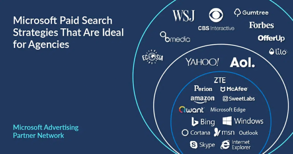 Your ads can show across the Microsoft Advertising Network, including Bing and partner search engines and sites like Yahoo, plus other partners. Microsoft lists placements such as Bing, AOL, Yahoo, DuckDuckGo, Ecosia, and more partners.