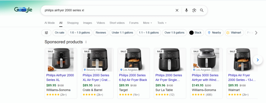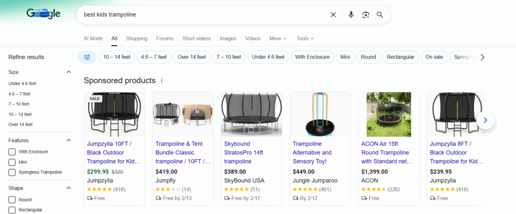 Let’s focus on the main advantage: appearing in searches when shoppers are actively looking for the exact product you sell, as well as when they’re searching for the best options within a specific product category.