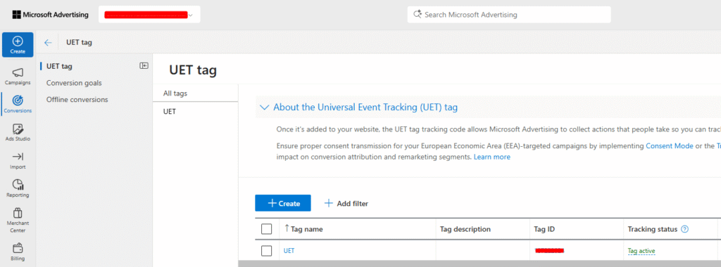Step 1: Create a UET Tag in Microsoft Ads