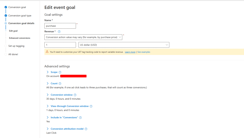 Step 4: Create a Conversion Goal in Microsoft Ads